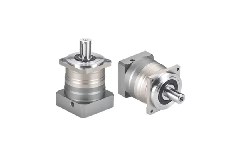The helical gear reducer adopts a precision planetary gear train with coaxial input and output shafts, offering excellent transmission stability and positioning accuracy. The use of helical gears ensures smoother tooth engagement, which significantly reduces vibration and noise, while also contributing to lower backlash and higher transmission precision. Gears are made from alloy steel and undergo controlled-atmosphere carburizing and quenching, achieving a surface hardness of HRC58–62 for excellent wear resistance. Housed in a high-strength ductile iron casing, the reducer offers robust performance under dynamic loads. With a single-stage efficiency of ≥98%, and available in 1–3 stage configurations, it provides a transmission ratio range of 3 to 250. A low return clearance of ≤15 arc minutes makes it ideal for high-precision servo applications, CNC systems, and advanced automation equipment.