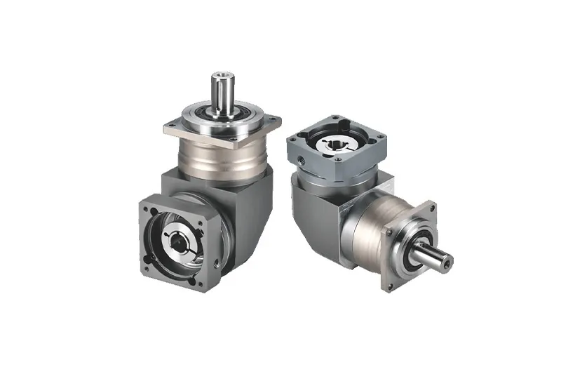 Right-Angled Helical Gear Reducer (L Shape) Combining helical gear precision with a 90-degree output structure, this right-angled reducer features a bevel-helical input stage for compact yet smooth torque delivery. The angled tooth profile provides low backlash and quiet performance, while gears are carburized and quenched to HRC58–62. A ductile iron housing and dual-bearing support ensure mechanical stability under load. With efficiency ≥98%, transmission ratios from 3 to 250, and return clearance ≤15 arc minutes, it is ideal for articulated robots, packaging machinery, and space-constrained automation systems.